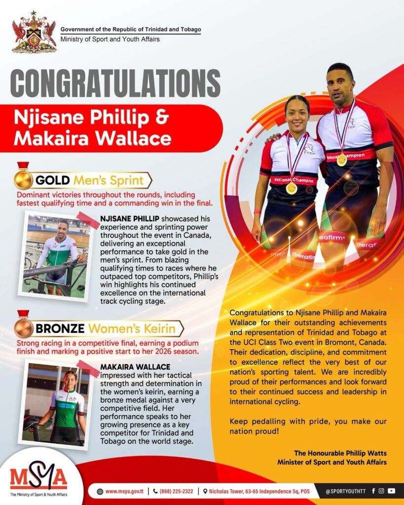 Congratulations to Njisane Phillip (Gold Men’s Sprint) and Makaira Wallace (Bronze Women’s Keirin) on their…