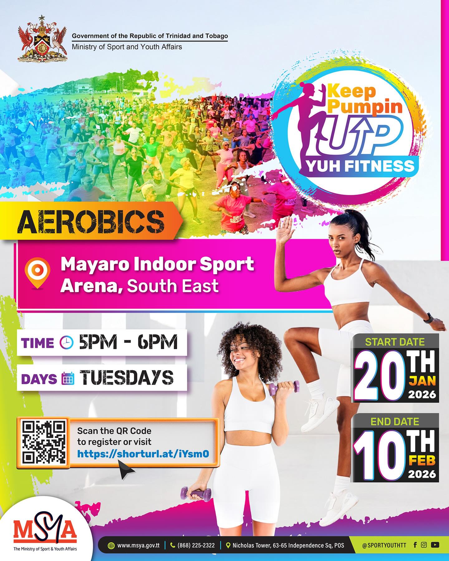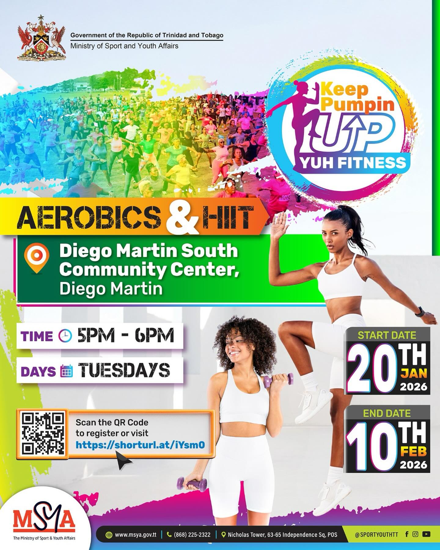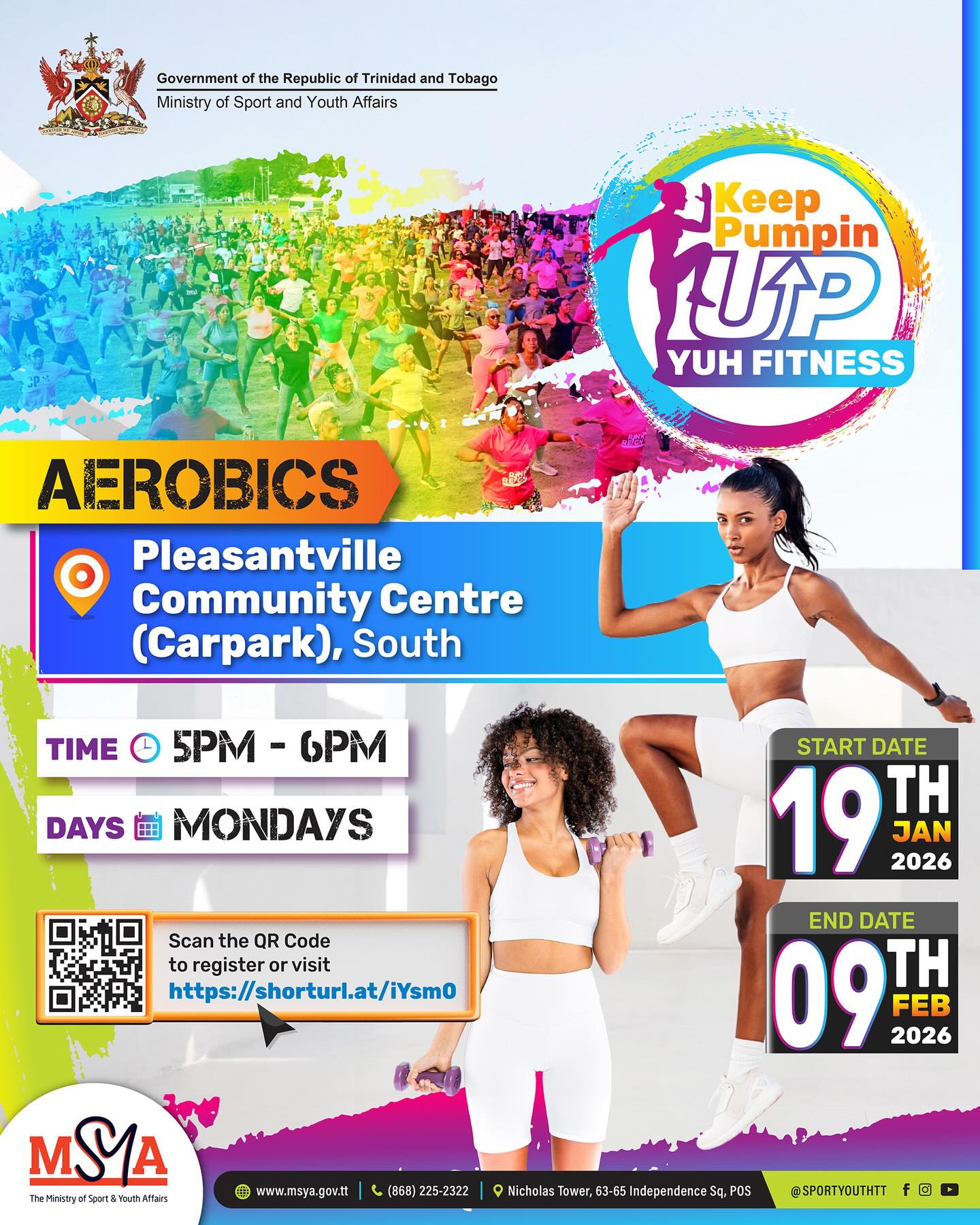 Keep Pumpin’ UP Yuh Fitness! Join us for FREE Aerobics sessions at the Pleasantville Community Centre (Carpark), South and get moving with energy, fun, and community vibes. 5PM – 6PM Mondays19th January – 9th February 2026 Click here to register and take the first step toward a healthier you!